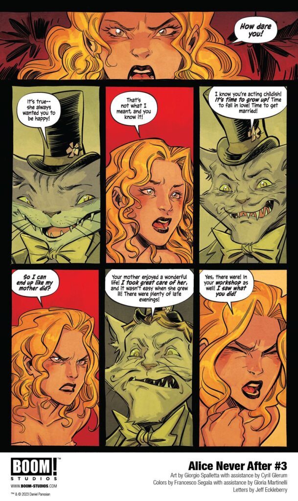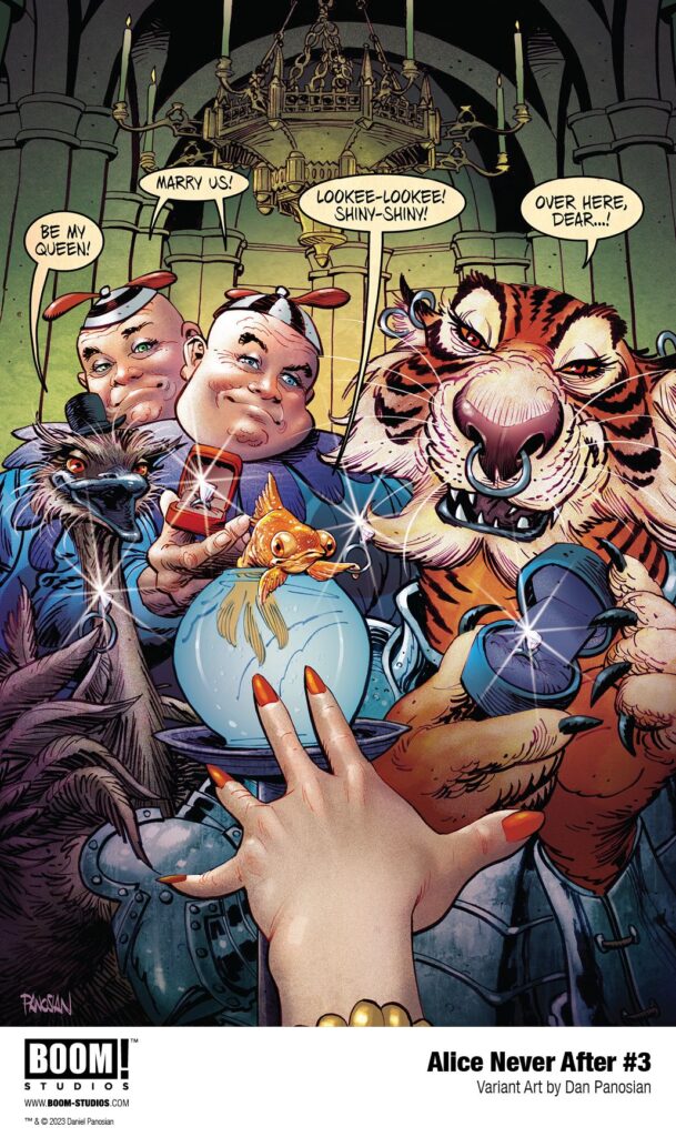 ALICE NEVER AFTER #3, the next issue of the new five-issue original series from superstar artist and writer Dan Panosian (An Unkindness of Ravens, Canary), artist Giorgio Spalletta (007: For King and Country), colorist Francesco Segala, and letterer Jeff Eckleberry. Continue to blur the lines between fantasy and reality this Summer in ALICE NEVER AFTER, only at BOOM! Studios, available September 2023.