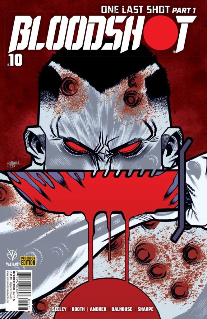 As BLOODSHOT works with new allies KT and Wilfred Wigans, a familiar foe lurks in the background, plotting the return of [CLASSIFIED]. Seeley has big plans for Valiant’s supersoldier in the final explosive arc “One Last Shot” and it all starts here in BLOODSHOT #10, featuring art from industry icon Brett Booth and rising star Pedro Andreo with colors from Andrew Dalhouse and letters by Dave Sharpe.