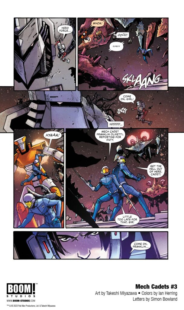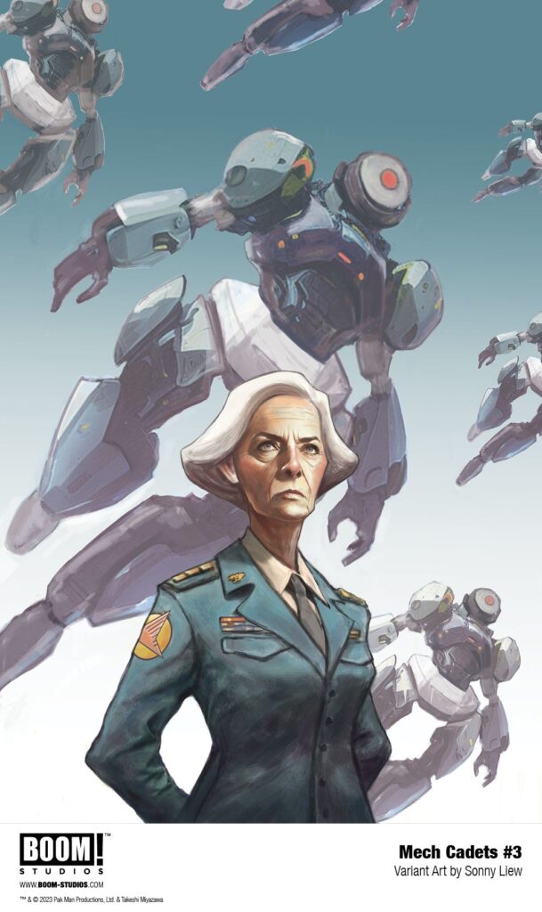 MECH CADETS #3 features a main cover by series artist Takeshi Miyazawa and Ian Herring, and variant covers by acclaimed artists Sonny Liew and Miguel Mercado.