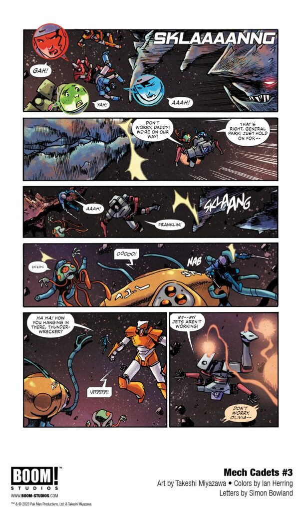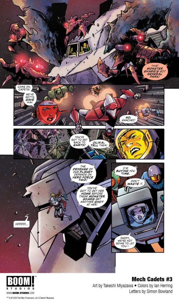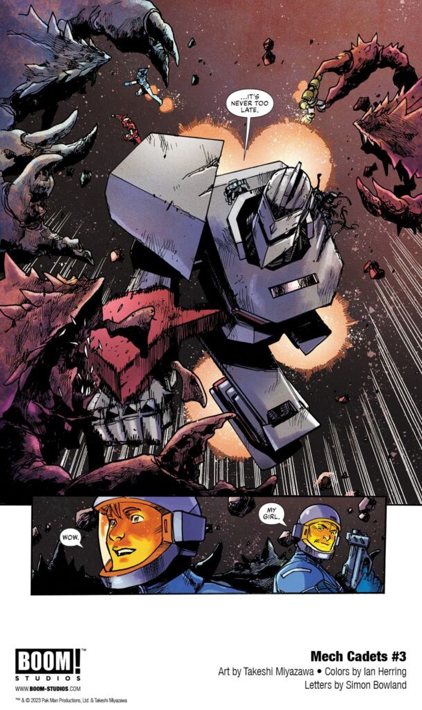 MECH CADETS #3, the next issue of a brand new chapter in the hit mecha series by co-creators Greg Pak (Ronin Island) and Takeshi Miyazawa (Ms. Marvel), with colors by Ian Herring (Deadpool), and letters by Simon Bowland (Mech Cadet Yu). Available October 2023.