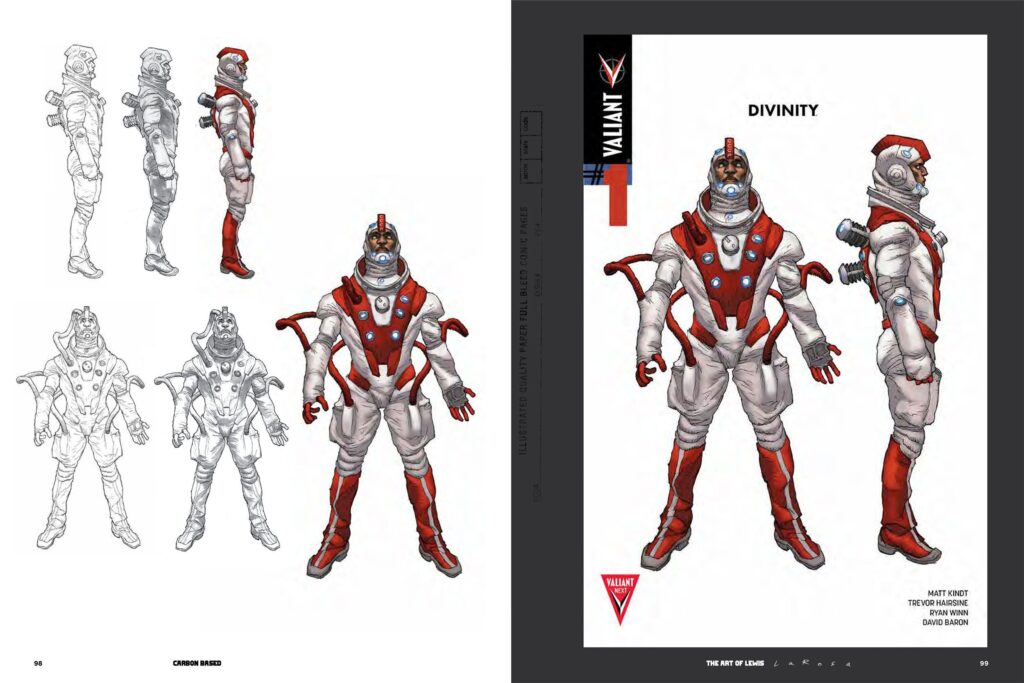 CARBON BASED is more than just a collection of images; it’s a massive, 250+ page exploration of an artistic evolution. The deluxe, 10″ x 12″ hardcover book is designed to showcase LaRosa’s raw, unexpurgated line art in all its painstakingly rendered intensity. Inside, readers will find rarely seen covers, character designs, concepts, and more from his celebrated runs on Divinity, Savage, Shadowman, A Vicious Circle, and many others. The book promises an intimate look at his process, with page-by-page commentary from LaRosa himself and former Valiant Editor-in-Chief Warren Simons.