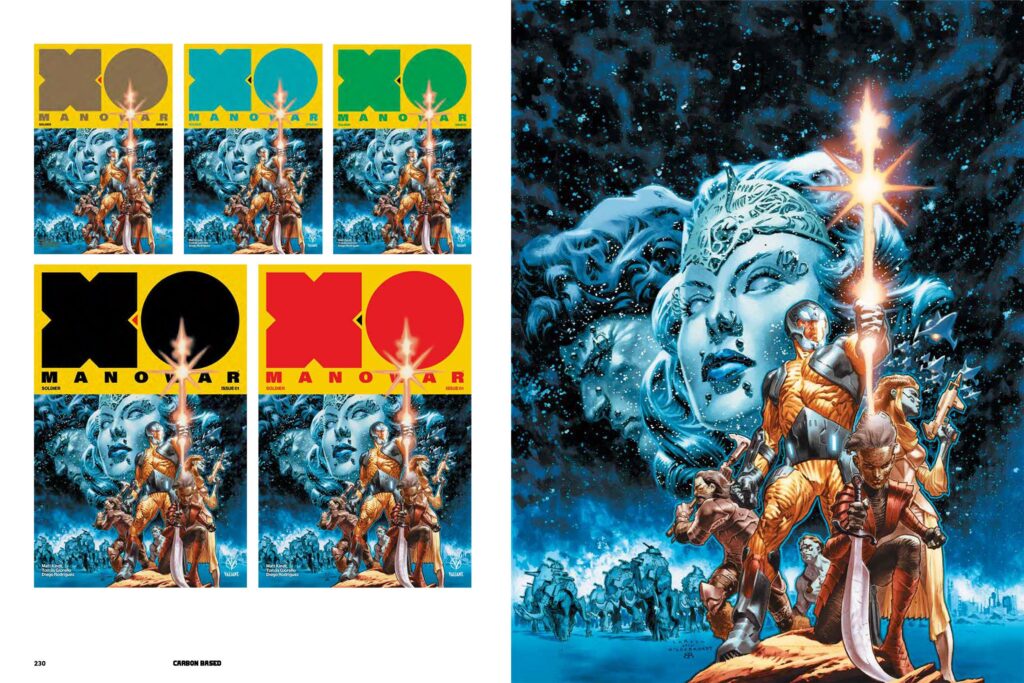 To celebrate this career retrospective, the Kickstarter campaign is loaded with exclusive offerings for backers. In addition to the Kickstarter-exclusive, foil-stamped hardcover, fans can pledge for limited-run slipcased, signed, and even remarqued editions for a truly personal touch. The campaign also features a deluxe portfolio set recreating the fine detail of his most iconic Valiant covers, premium t-shirts, and specialty giclée art prints. For the ultimate collector, the campaign is even offering highly coveted commissions and the chance to own the original cover art for CARBON BASED itself.