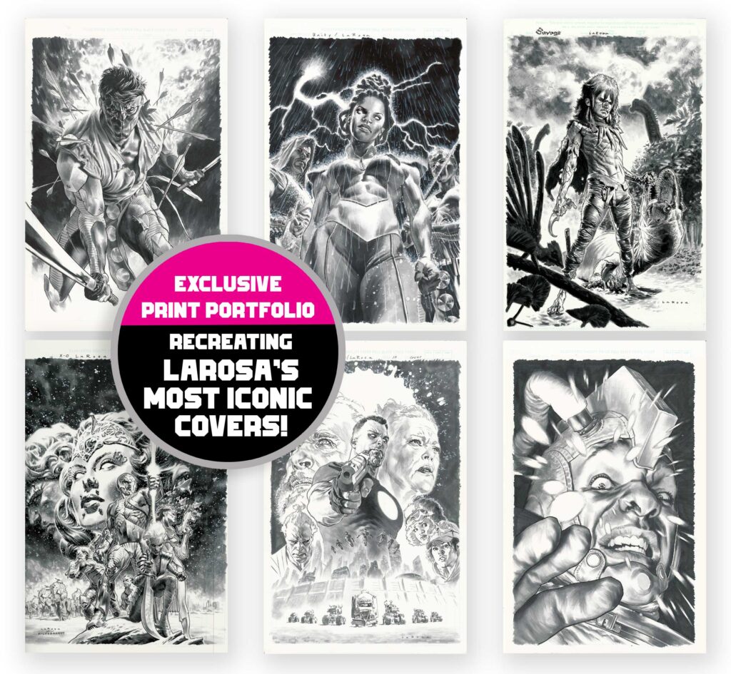 Adding to the book’s prestige, it will also feature appreciations from some of LaRosa’s most prominent colleagues and collaborators. Comic book titans like Lee Bermejo (Joker), Dave Johnson (Superman: Red Son), Matt Kindt (BRZRKR), Jeff Lemire (Black Hammer), and Yanick Paquette (Wonder Woman: Earth One) will share their thoughts on his work. This collection of voices provides a 360-degree view of LaRosa’s impact on the industry. The incredible comic book covers he has created over the years are a testament to his unique talent, and this book will finally give them the spotlight they deserve.